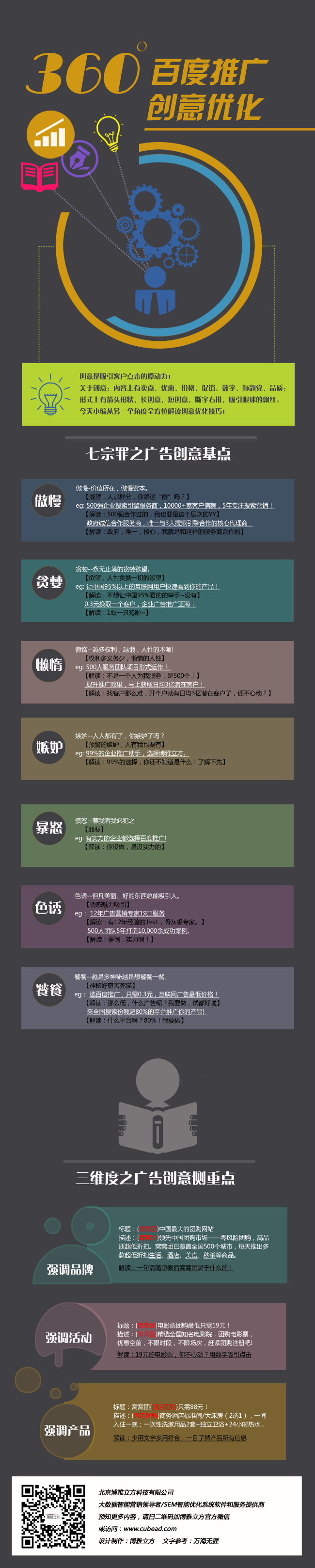 创意是吸引客户点击的原动力!关于创意:内容上有卖点,优惠,价格,促销,数字,标题党,品质;形式上有箭头形状,长创意,短创意,断字右排,吸引眼球的飘红。今天小编从另一个角度全方位解读创意优化技巧!